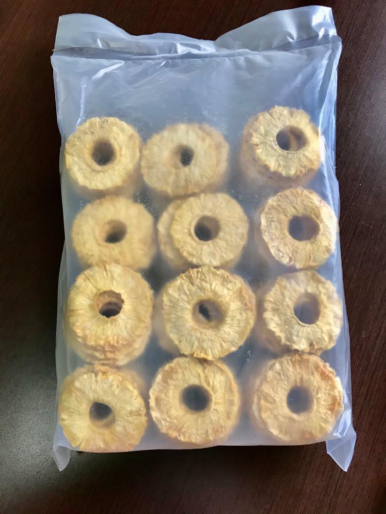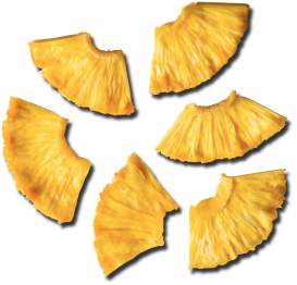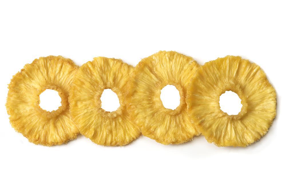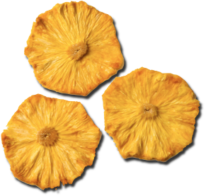 La dulzura de la piña fresca se ve mejorada en el proceso de deshidratación, resultando una piña deshidratada con un sabor muy dulce.